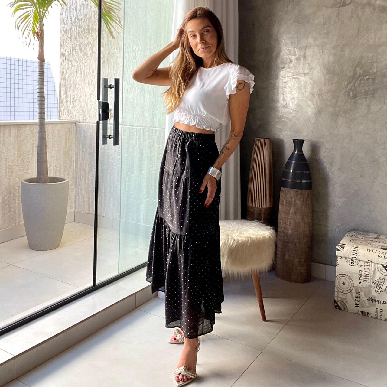 Saia Midi. Tecido Crepe. Detalhes em aplicação de Metalzinho. Elastico na Cintura. Tamanho M (veste P ao G tranquilamente) .